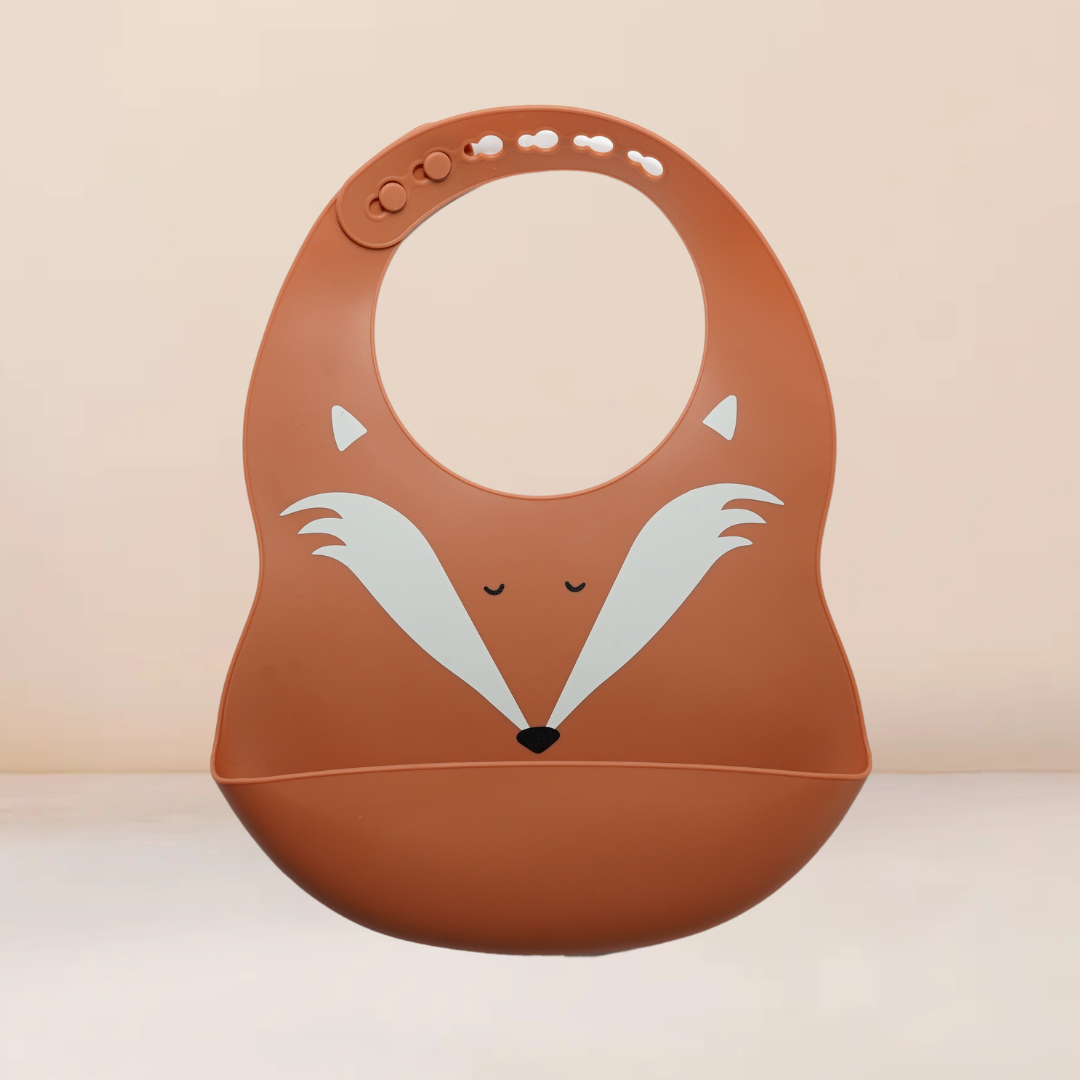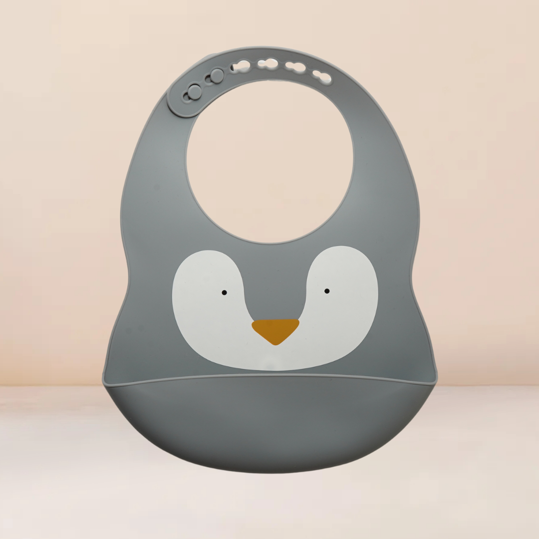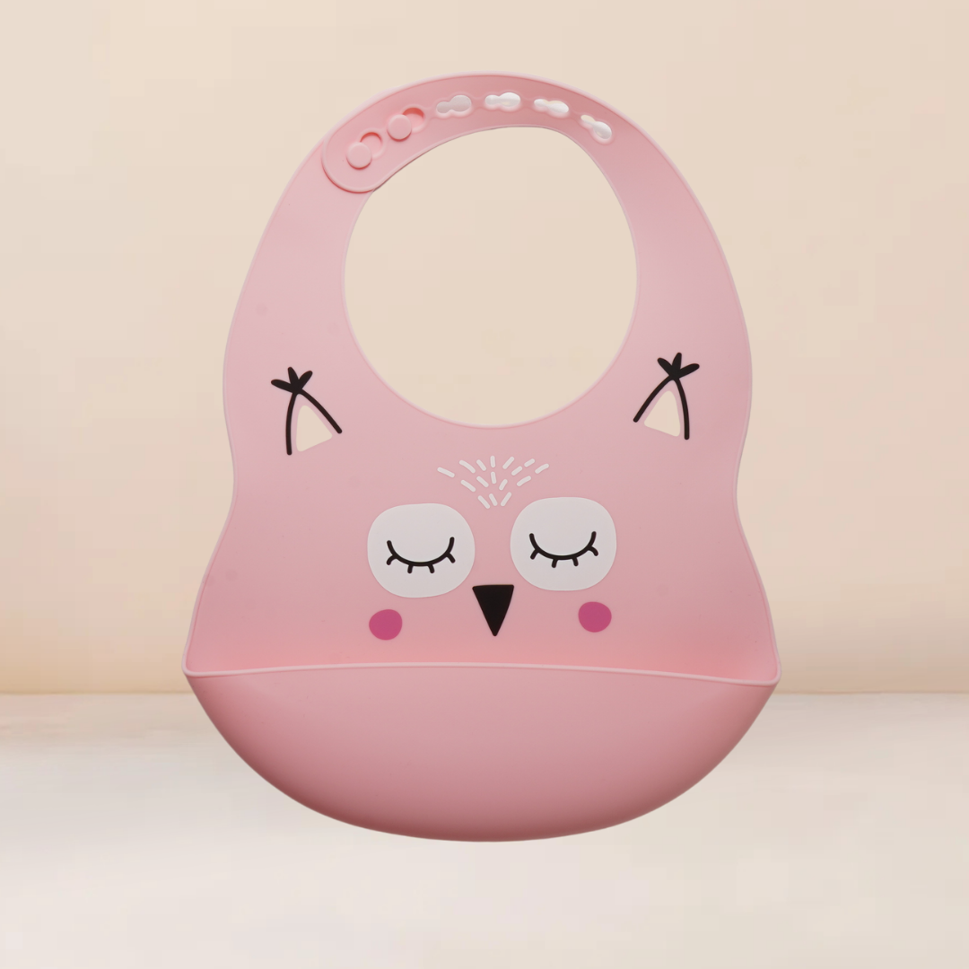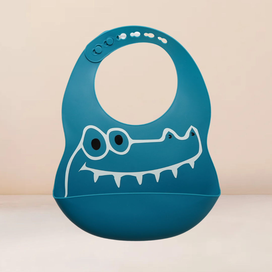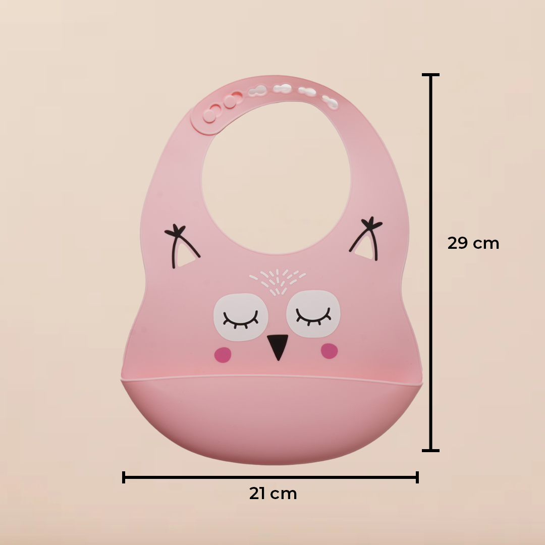 Babero impermeable con bolsillo recolector, diseñado para hacer la hora de la comida un momento mas limpio para el bebe como para los papas. Fácil de limpiar, suave y seguro con su material de silicón grado alimenticio y su ajuste cómodo al cuello del bebe. Enrollable y con dibujos tiernos con ajuste que acompaña al crecimiento de tu bebe.