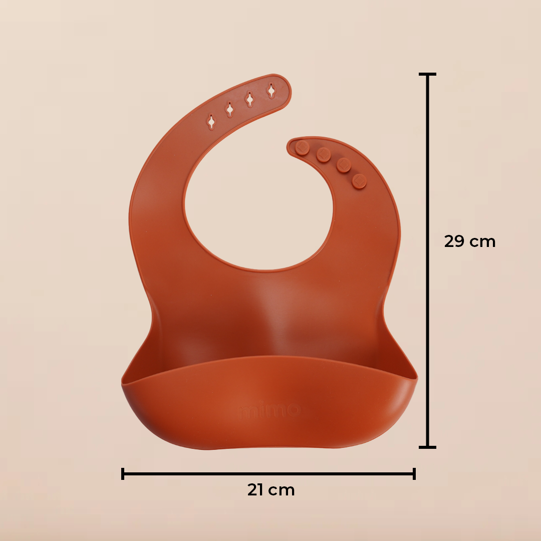 Babero impermeable con bolsillo recolector, diseñado para hacer la hora de la comida un momento mas limpio para el bebe como para los papas. Fácil de limpiar, suave y seguro con su material de silicón grado alimenticio y su ajuste cómodo al cuello del bebe acompañándolo en el crecimiento.
