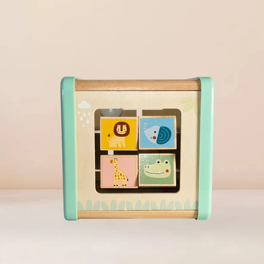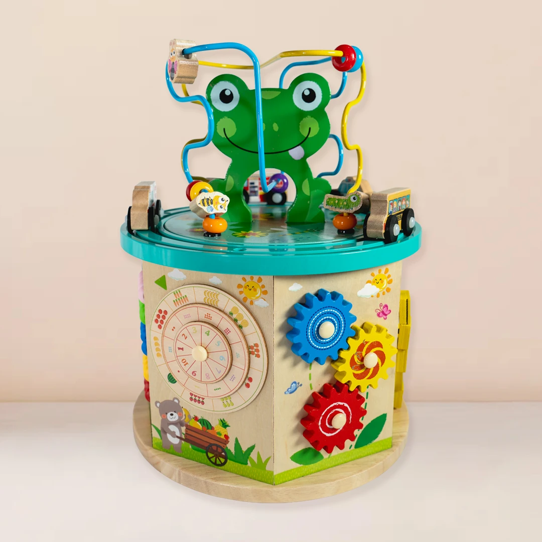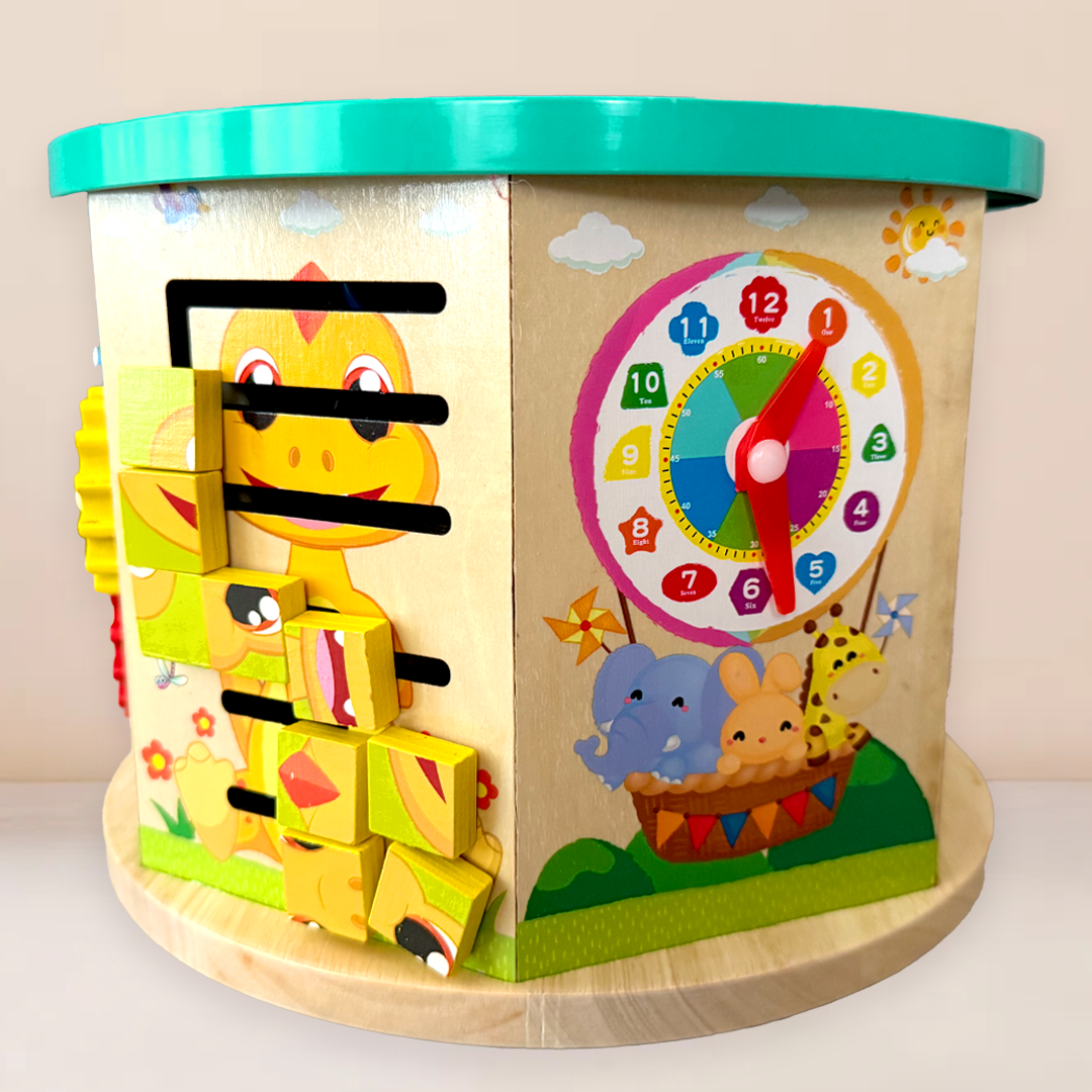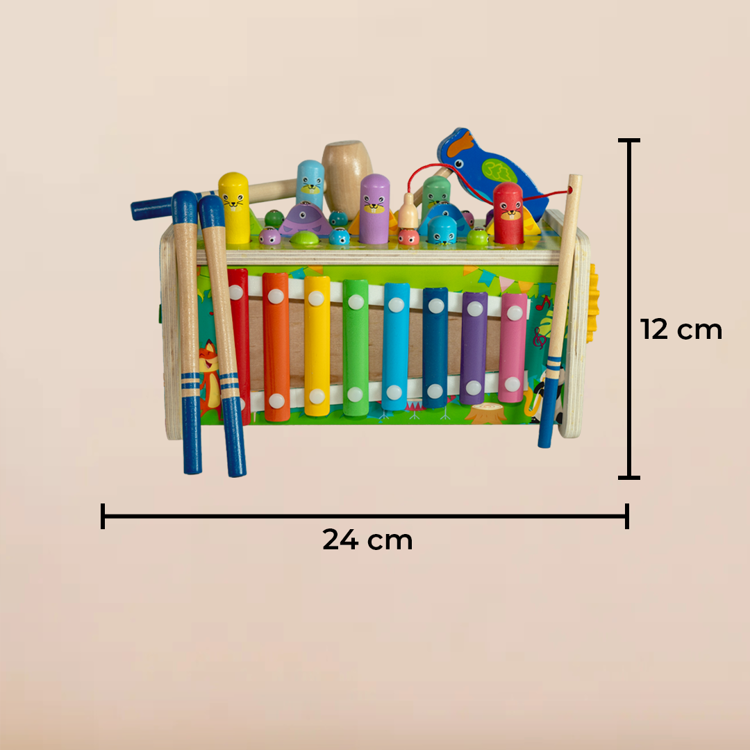 ¡Diversión garantizada con este banco de golpes y encaje de madera!