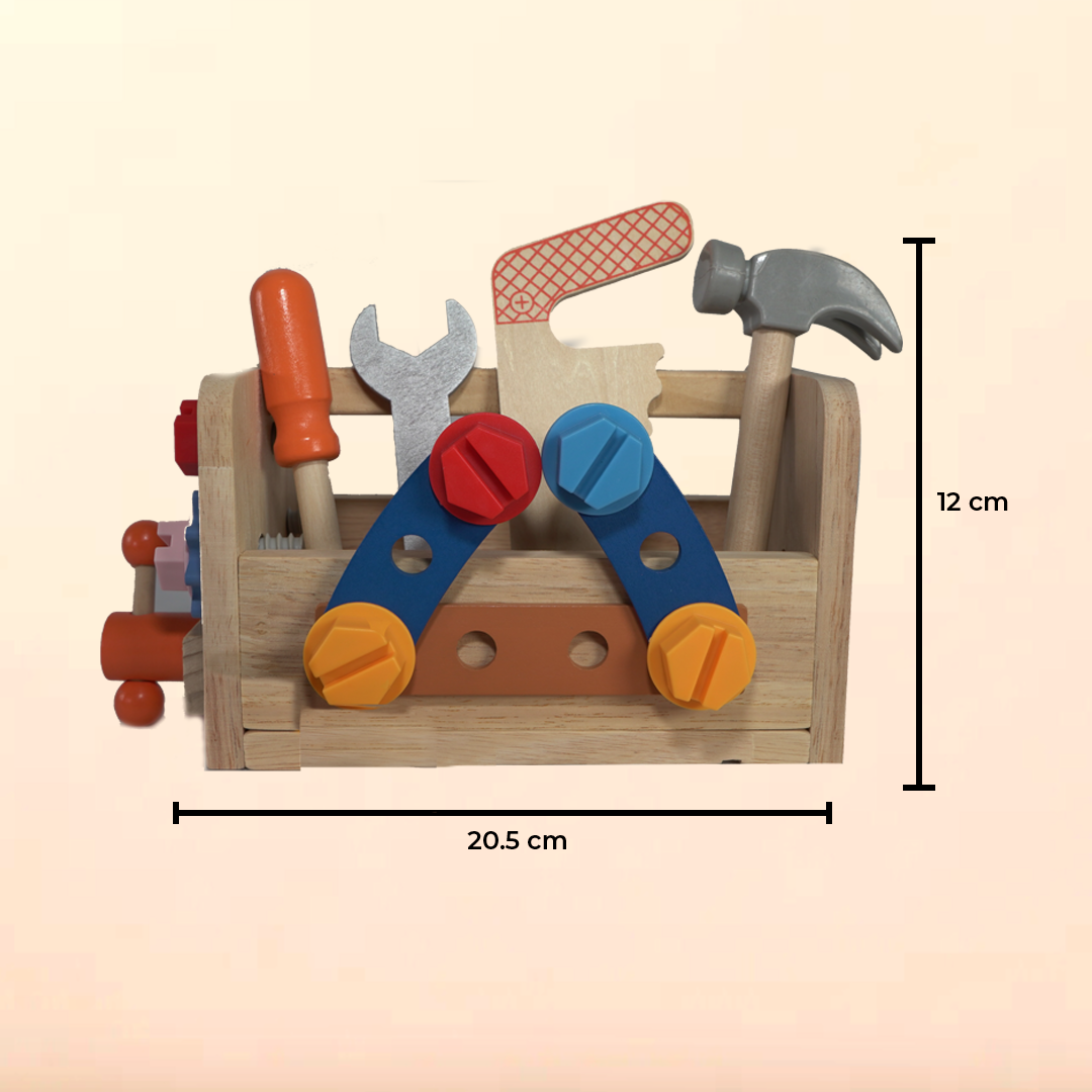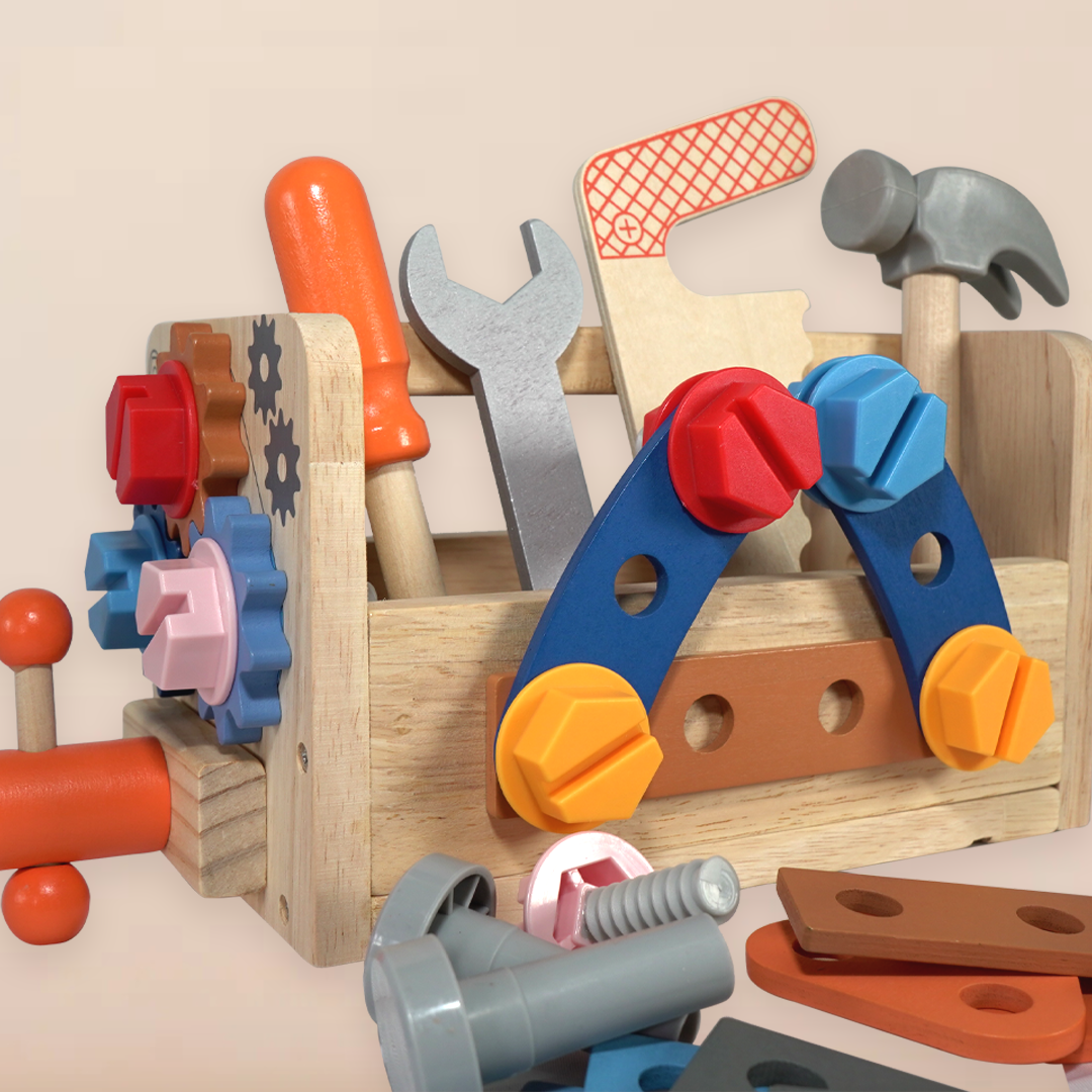 Este Disassembly Tool Set es una introducción al mundo de la construcción, diseñado para que los niños exploren, armen, desarmen y descubran cómo funcionan las cosas. Fabricado en madera natural con acabados suaves y seguros, este set incluye martillo, destornillador, tuercas, engranajes y piezas de colores que inspiran la creatividad y la lógica.