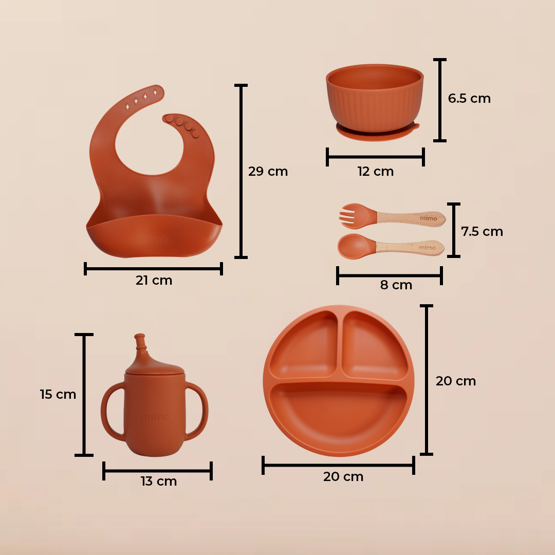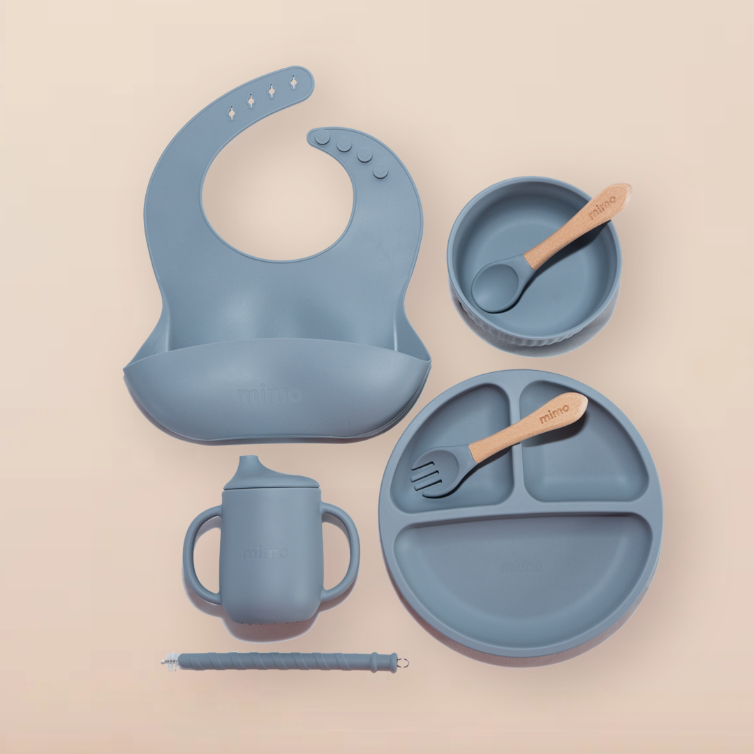 Estos hermosos set de alimentación complementaria esta diseñado para disfrutar junto con tu bebe de esta etapa. Fabricado de silicón grado alimenticio libre de BPA, es seguro, suave y muy facil de limpiar. incluye: babero ajustable, plato con divisiones y tazón profundo con succión, vasito con popote y cuchara y tenedor ideales para manitas pequeñas.