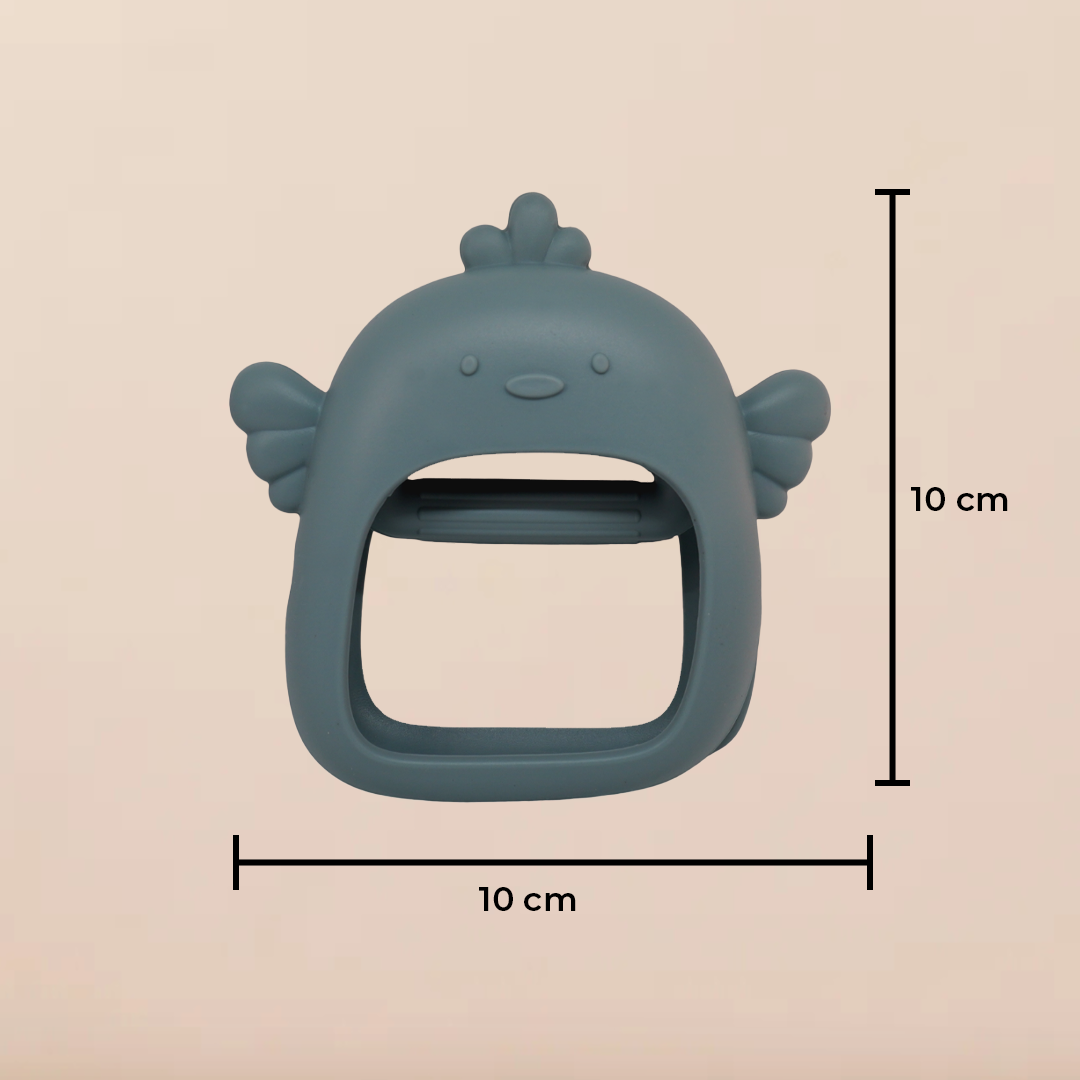 Esta mordedera tiene un diseño divertido y funcional que le encantara a tu bebe. Fabricado con silicón grado alimenticio, su estructura ergonómica incluye un mango central que permite un agarre firme y seguro, ideal para manos pequeñas.