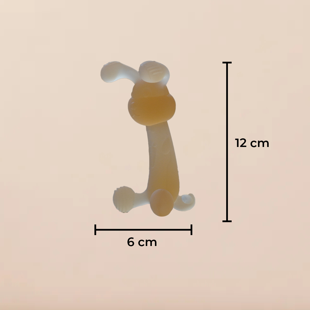 Diseñada con un equilibrio ideal entre suavidad y firmeza, su forma ergonómica permite que las pequeñas manos la sujeten fácilmente mientras sus distintas texturas estimulan el sentido del tacto y alivian las encías durante la dentición.